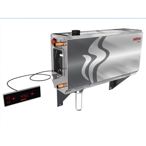 Парогенератор HARVIA Helix създава 100% пара и затопля цялото помещение. Мощност - 4.5 . Лесен за монтаж, не се нуждае от отделно помещение, а свръзките му са оразмерени по стандартите. Парогенераторът е лесен за поддръжка, и като опция може да се включи и автоматично промиване на резервоара (клапан за автоматична промивка). Има бърз и лесен достъп до всички подменяеми части.